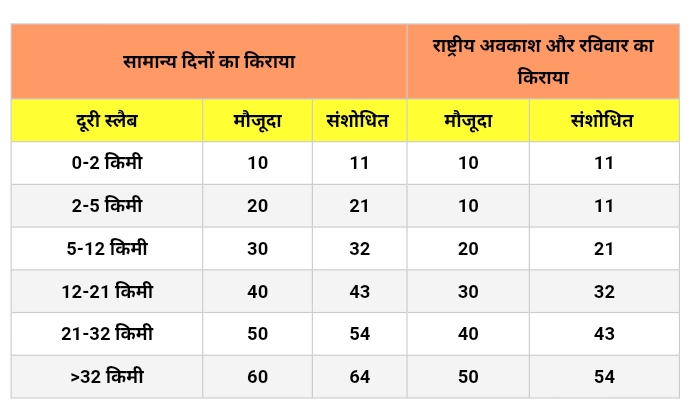 बिजली और रखरखाव की लागत में वृद्धि नेटवर्क विस्तार की ज़रूरत 2017 के बाद पहली बार संशोधित नया किराया (25 अगस्त 2025 से)